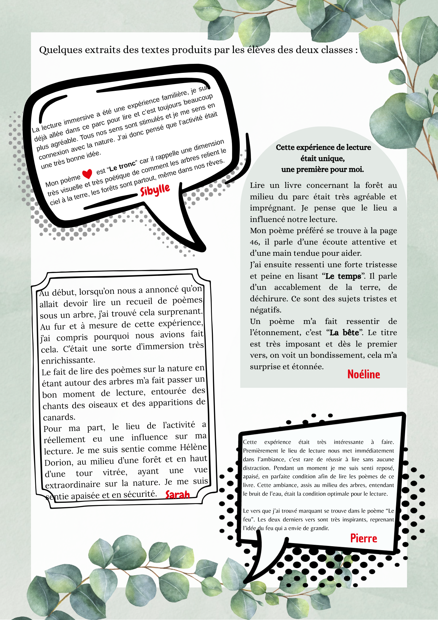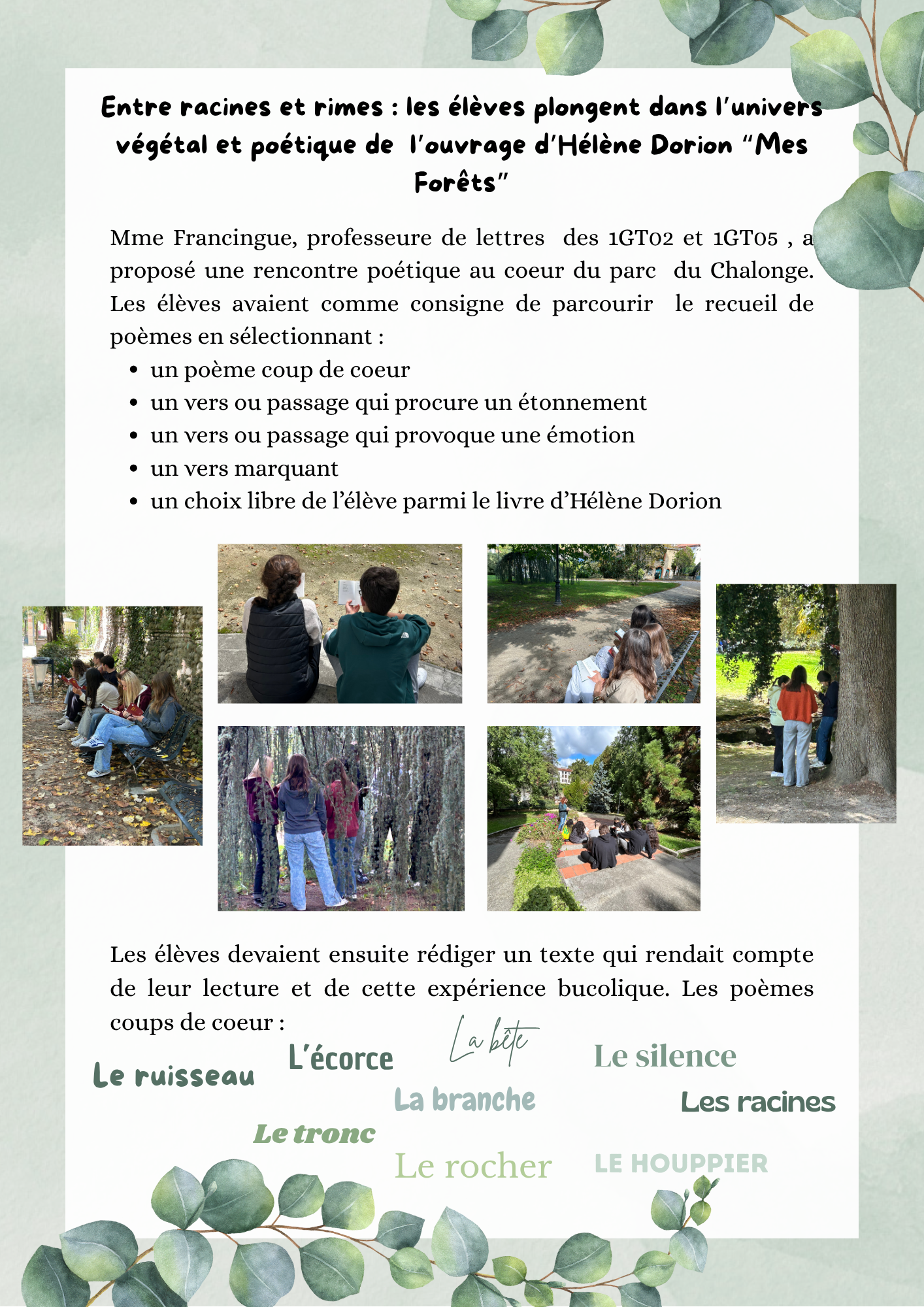 Quand la poésie s'enracine : les 1GT02 et 1GT05 s'emparent de l'oeuvre au programme en immersion au coeur du parc municipal de Pamiers