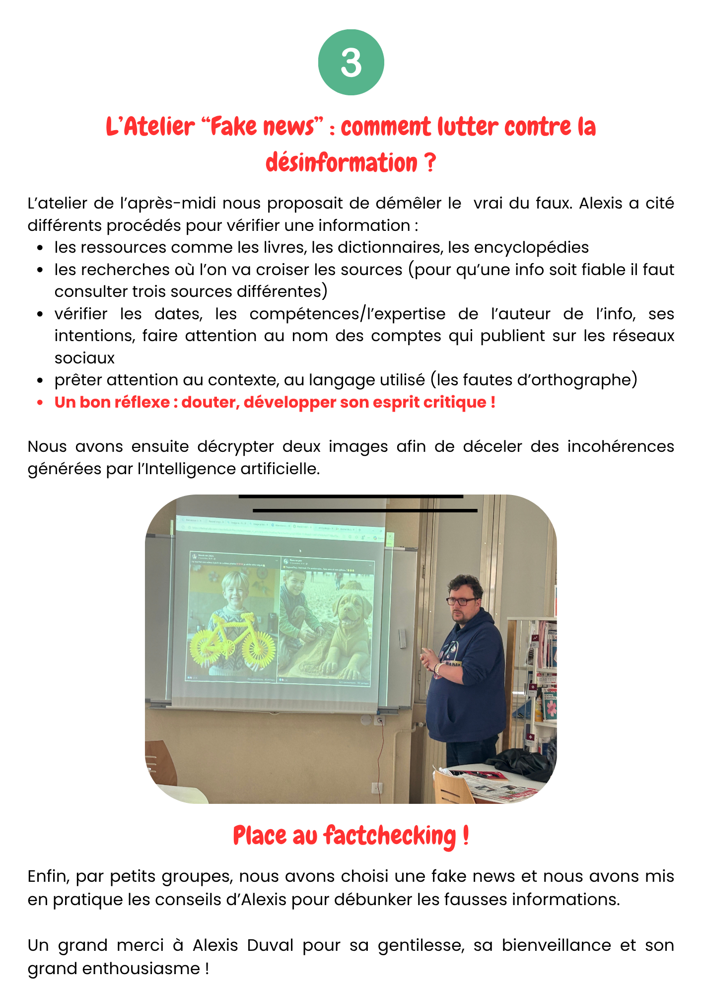 Ateliers d’Education aux Médias et à l'Information avec Alexis Duval journaliste à l'un des quotidiens le plus lu en France
