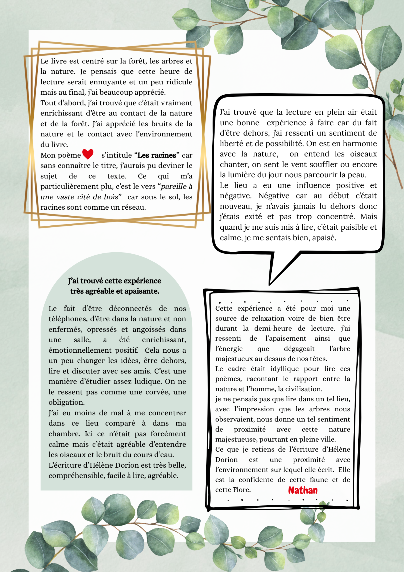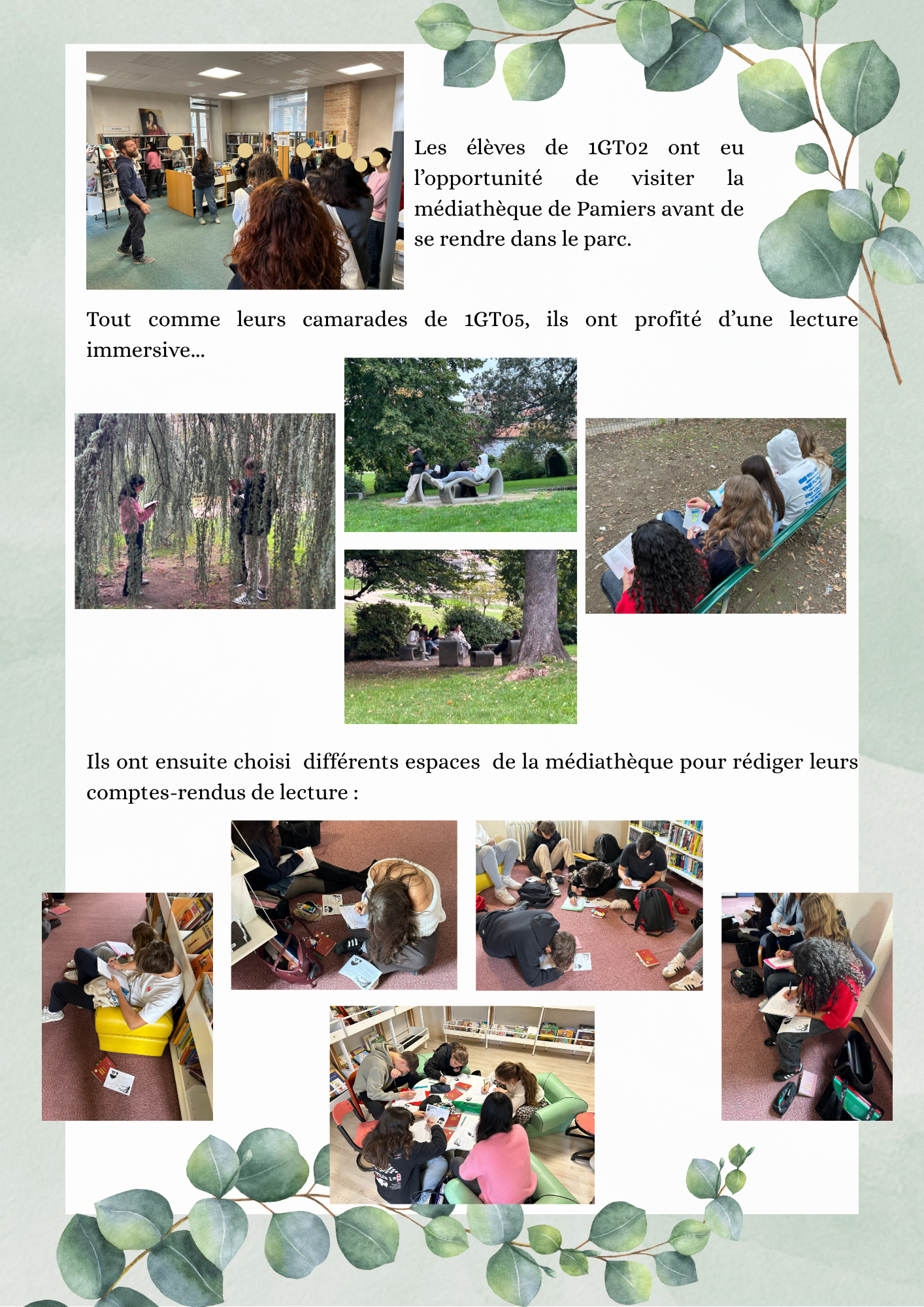Quand la poésie s'enracine : les 1GT02 et 1GT05 s'emparent de l'oeuvre au programme en immersion au coeur du parc municipal de Pamiers
